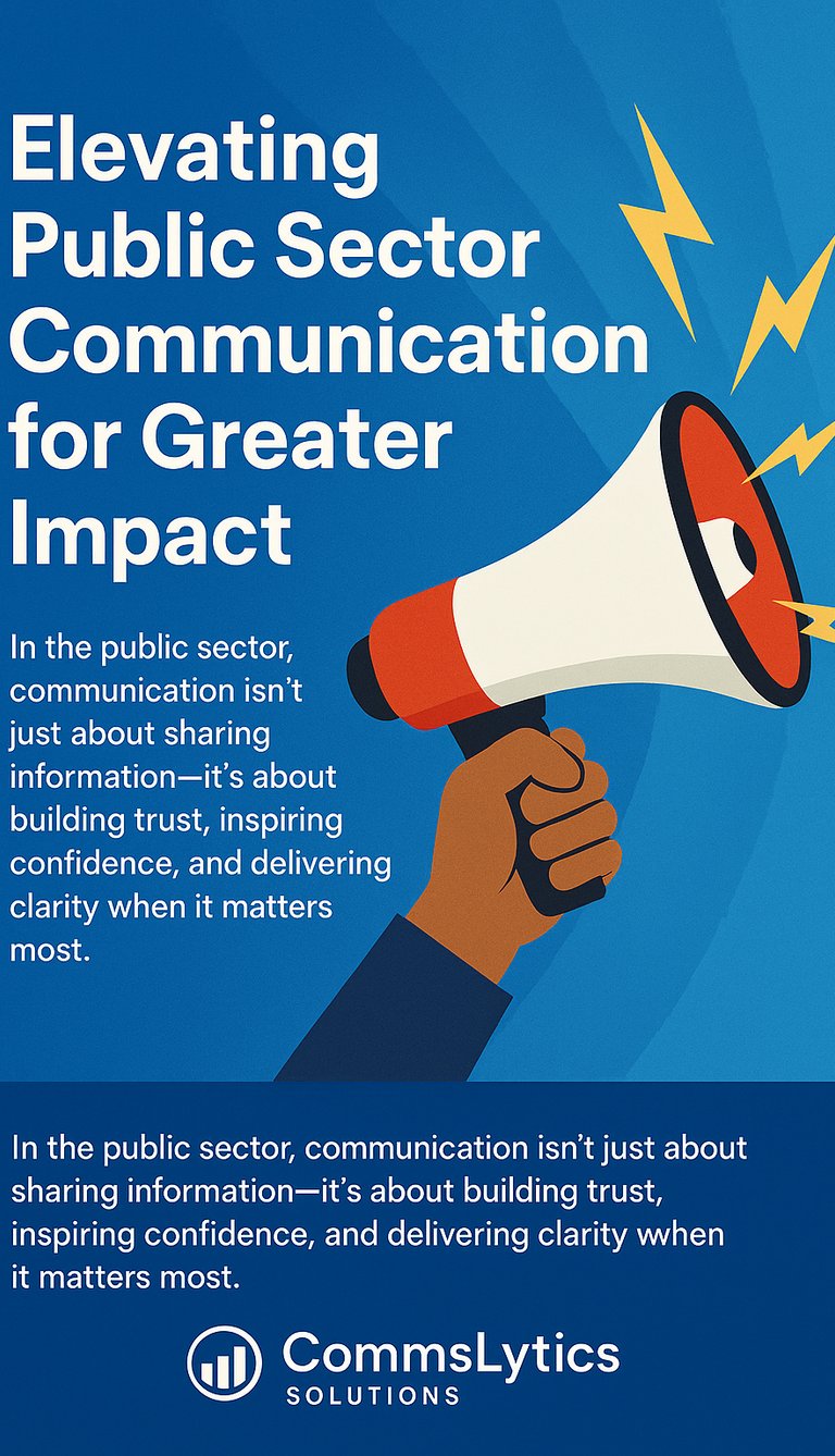 In the public sector, communication isn’t just about sharing information—it’s about building trust, inspiring confidence, and delivering clarity when it matters most. Whether you’re a government agency, public institution, or civic initiative, your voice carries weight. At CommsLytics Solutions, we help you use it to drive understanding, foster engagement, and amplify your impact.